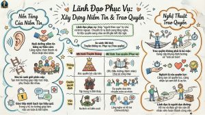 Làm thế nào để thoát khỏi cái bẫy này và xây dựng một đội ngũ tự chủ, gắn kết mà không cần đến uy quyền cứng nhắc? Câu trả lời nằm ở khái niệm “Lãnh đạo phục vụ” (Servant Leadership). Đây không phải là một khẩu hiệu đạo đức, mà là một chiến lược quản trị sắc sảo: Lãnh đạo không phải là đặc quyền để chỉ huy, mà là cơ hội để tạo đà cho người khác tỏa sáng.
