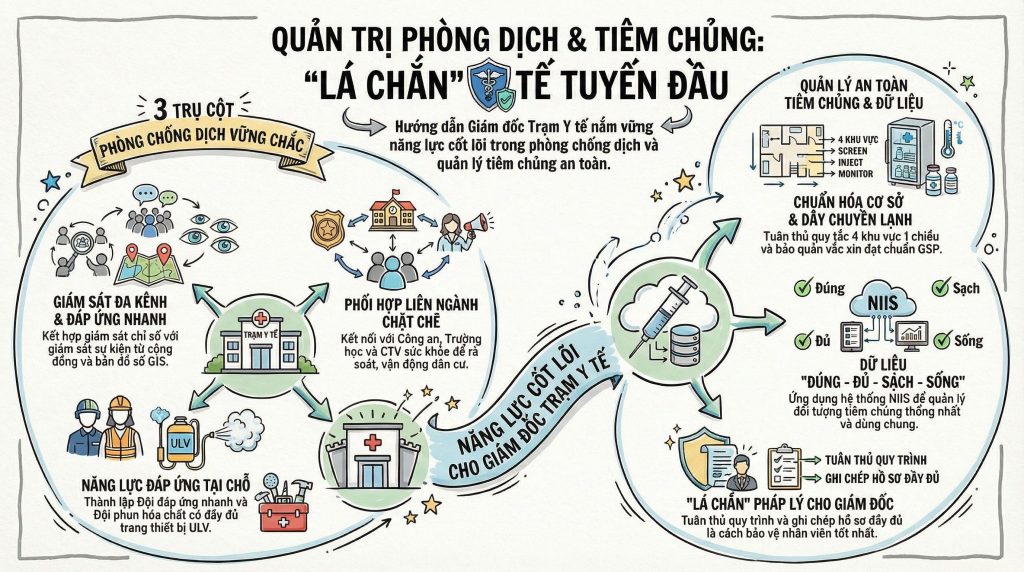 Trong công tác tiêm chủng, sự tận tâm phải đi đôi với kỷ luật quản trị khắt khe. Một chiến lược gia y tế hiểu rằng: “Tiêm đúng kỹ thuật là chưa đủ”. An toàn pháp lý và quy trình quản trị rủi ro mới là ưu tiên hàng đầu để bảo vệ cả nhân viên y tế và Giám đốc Trạm.
